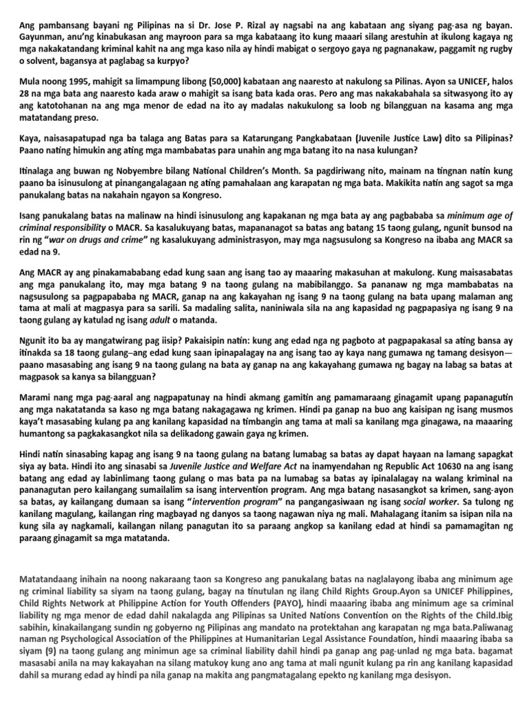 Kailangan nating baguhin ang Saligang Batas. Ibat-iba at magkakatulad na kaisipan naapektuhan ng mga kaisipang ito ang ating isip salita at gawa na siya namang pinapahayag natin sa ating lipunan. 22012019 Samantala tutol si Education Secretary Leonor Briones sa pagbaba ng age of criminal responsibility dahil hindi pa umano hinog ang pang-unawa ng mga batang 9 taong gulang.