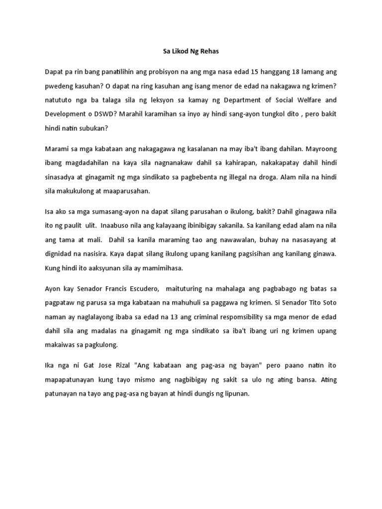 Bakit hindi pwedeng ikulong ang mga menor de edad. 17102020 Maaari nang lumabas ang mga edad 15 hanggang 65 taong gulang base sa pinakahuling desisyon ng Inter-Agency Task Force. Tumatalakay sa ibat ibang kwento istorya kasaysa. Mahalaga ang papel na ginagampanan ng mga kabataan dahil ayon nga sa kasabihan ay sila ang pag-asa ng bayan.