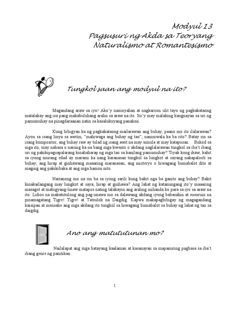 Modyul 13 Pagsusuri Ng Akda Batay Sa Teoryang Naturalismo At Pdf