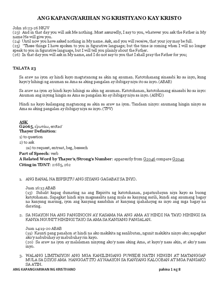 Ang.kapangyarihan ng oo at hindi spoken. O pinapawalang-sala ng Dios. 118 Tiyak na ang kapakanan ng mga kapatid sa Corinto ang iniisip ni Pablo nang magbago siya ng plano at hindi tumuloy sa pagpunta roon. 16 Hindi ko ikinakahiya ang Magandang Balita tungkol kay Cristo dahil ito ang kapangyarihan ng Dios sa ikaliligtas ng lahat ng sumasampalataya una ang mga Judio at gayon din ang mga hindi Judio.